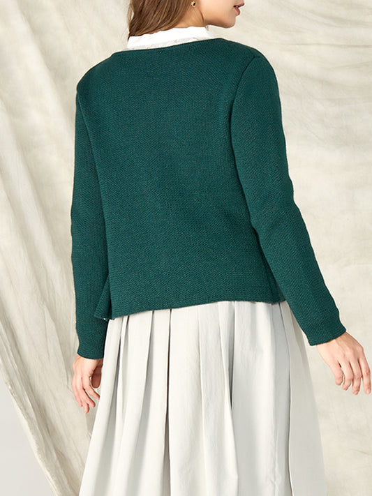 Women's Traditional Sweater Cardigan - MIRA IN DUNKELGRÜN